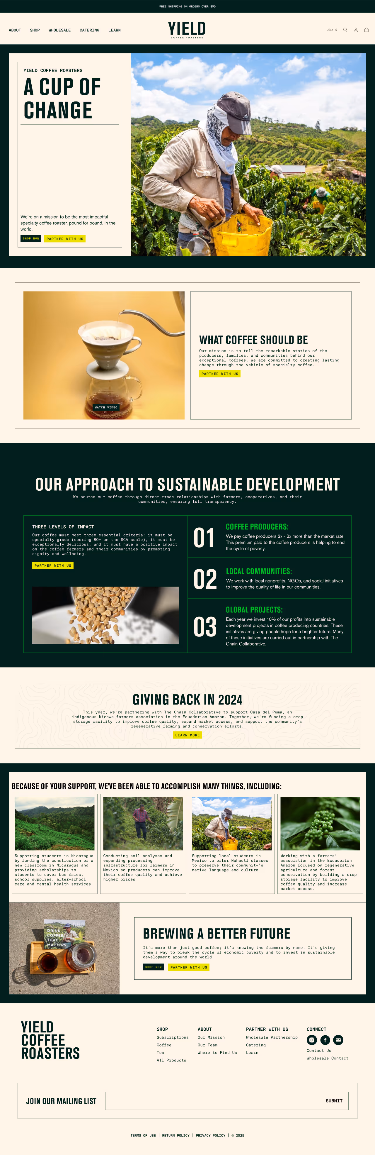 YIELD Coffee Roasters is guided by a belief in what coffee should be. That clarity shows up in their sourcing model, customer relationships, and product quality. But their previous website lacked structure and wasn’t standing out visually among competitors.